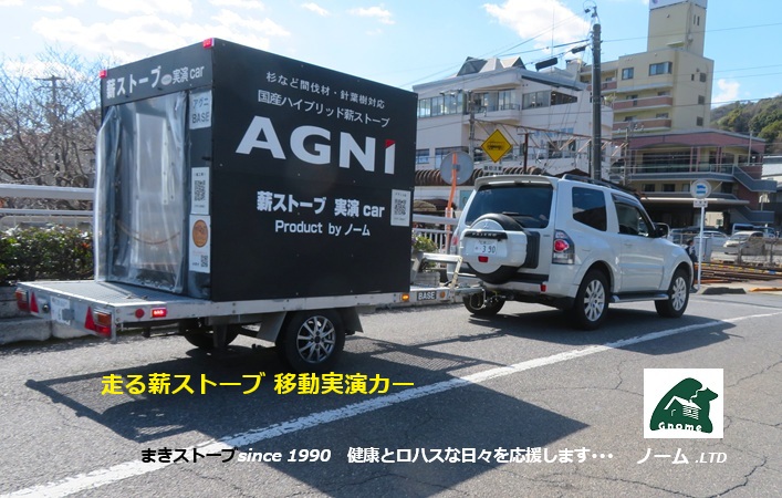 日本に有り余っている人工林の間伐材(杉・桧など)高温で早く燃え尽きるなどの理由で薪ストーブの燃料として敬遠されてきた木材を、ゆっくり燃焼できる 国産高性能鋳物製薪ストーブアグニ ☚ を 実演カーに搭載して各イベントに向け走ります。