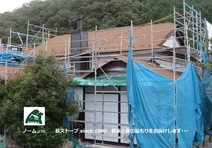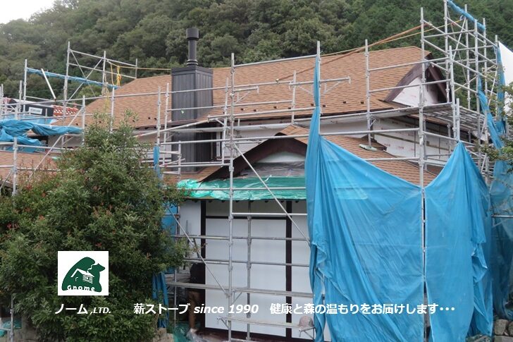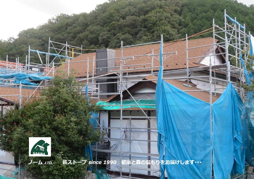 二月前に現地確認ビフォーアフターサービスを行っていた 広島市安佐北区にて住宅リノベーション工事の進むお宅  ☚ の薪ストーブ煙道一次工事を済ませました。 冬がかけ足でやって来る前に 国産高性能鋳物製薪ストーブ「アグニ」 ☚  の嫁ぐ日が待ち遠しい雨上がりの仕事日和でした。♪♪♪