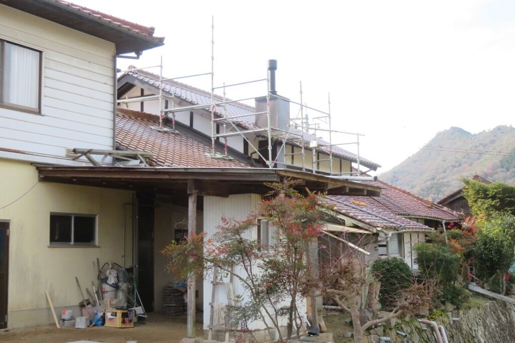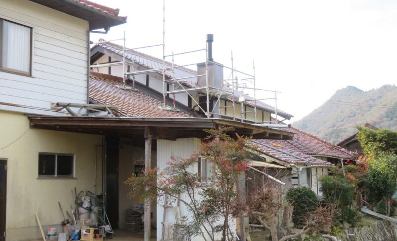 5か月前にご紹介した ☚ 広島市安佐北区にて住宅の大リノベーションが進むお宅の まきストーブ煙道一次工事 を済ませました。 お正月休みを目の前に屋根上煙突工事が続きます。