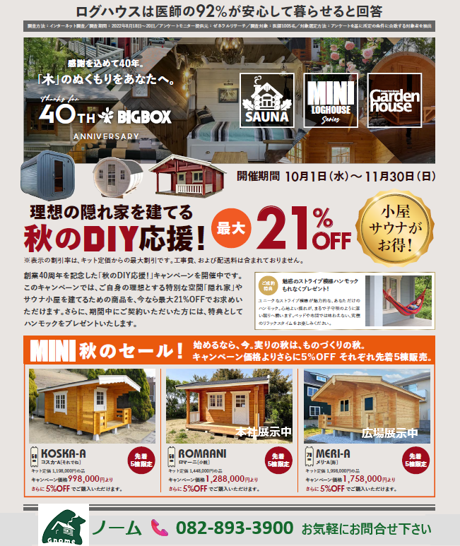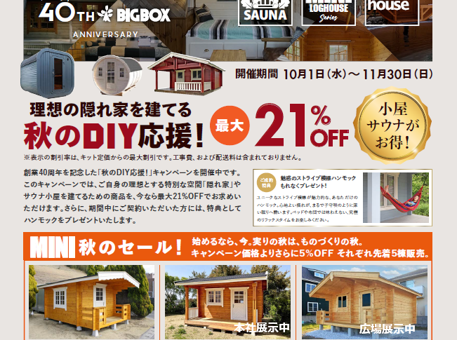 ビッグボックス 創業40周年を記念した「秋のDIY応援」キャンペーンを開催中です。