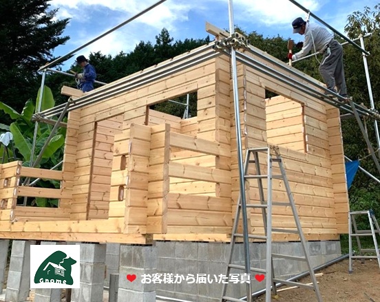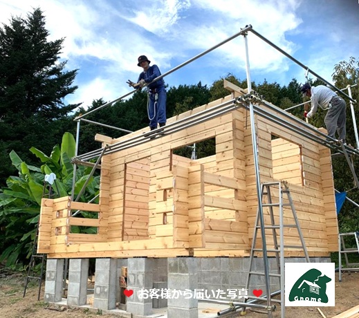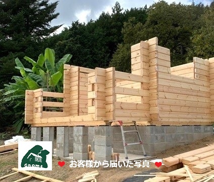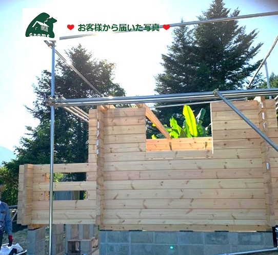 先週、神戸港から ミニログハウス「シェル70」☚ が到着し家族でセルフビルドの進む広島市佐伯区の農園様から写真の便りが届きました。